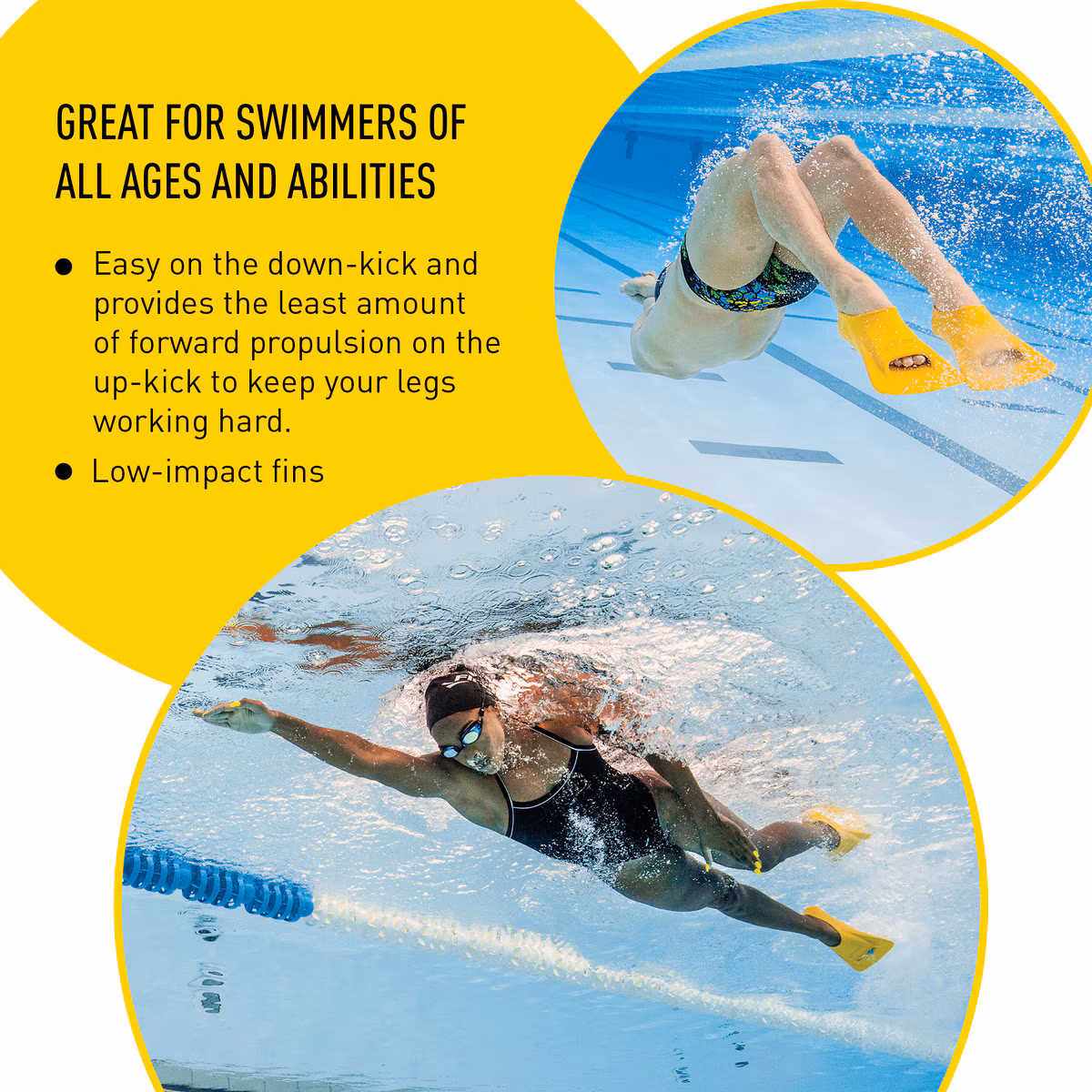 - شفرة قصيرة: تعزز ركلات أقصر وأسرع مع توليد دفع فعال في الماء
