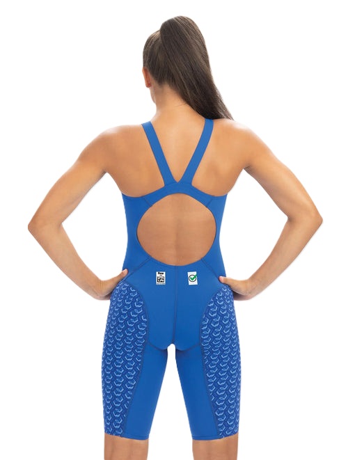 صُممت بدلة فيرست سترايك المفتوحة من الخلف للركبة للسيدات لتقدم أداءً تنافسياً مع إحساس خفيف الوزن وتحكم متقدم بالعضلات. معتمدة من الاتحاد الدولي للسباحة (FINA) ومعتمدة من الاتحاد الأمريكي للسباحة لجميع الأعمار، وتعتبر هذه البدلة خياراً ممتازاً لأي سباحة، خاصة المتسابقات الصغيرات من عمر 12 سنة وما دون.