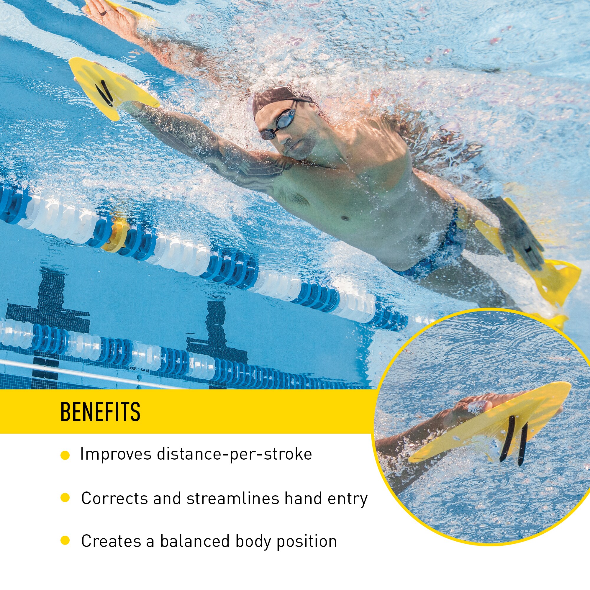 - تحسين تقنية السباحة: يساعد على تحسين وضعية الجسم من خلال تبسيط دخول اليد إلى الماء ومنع تداخلها، ومصمم خصيصًا لتدريبات سباحة الحرة.