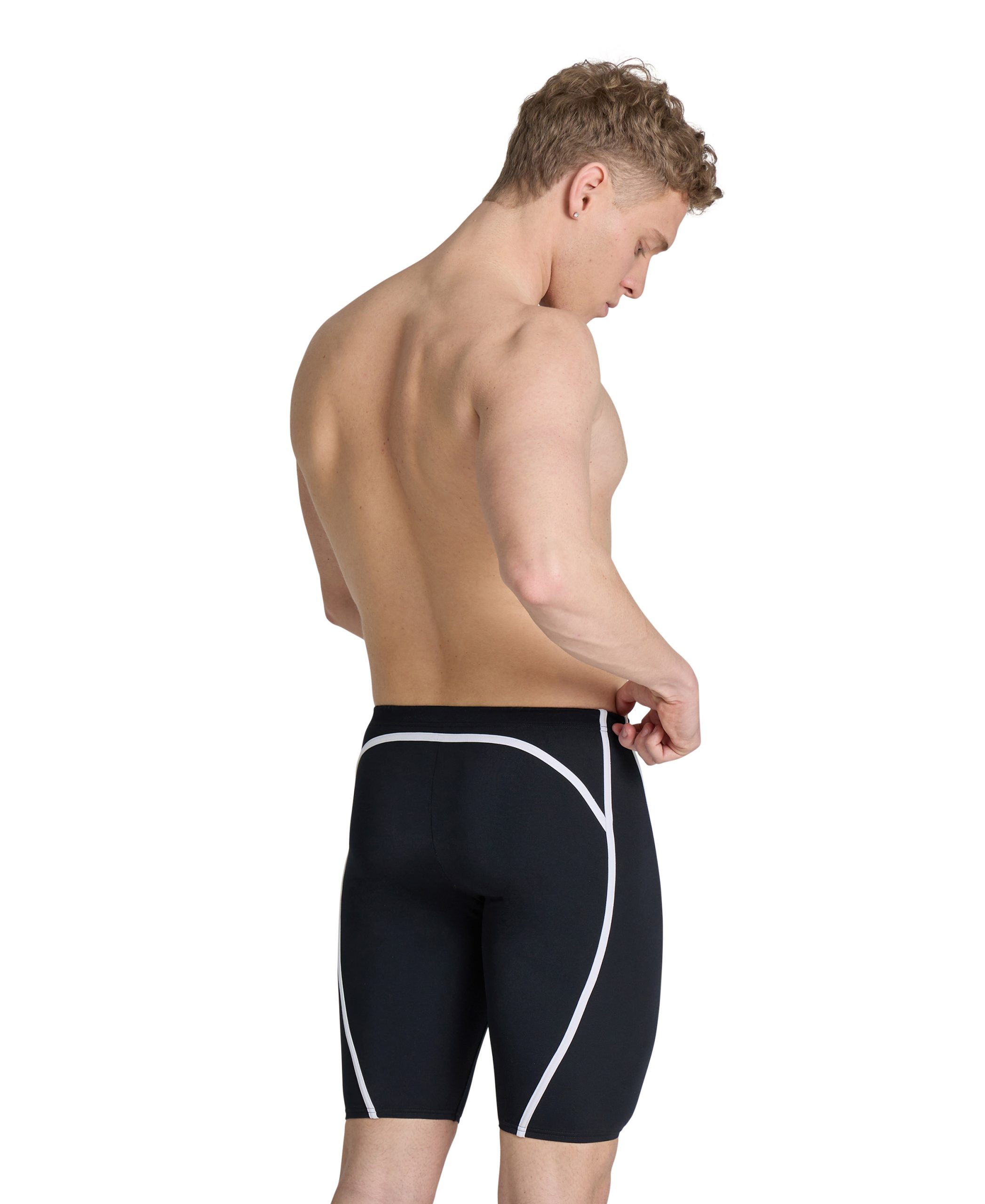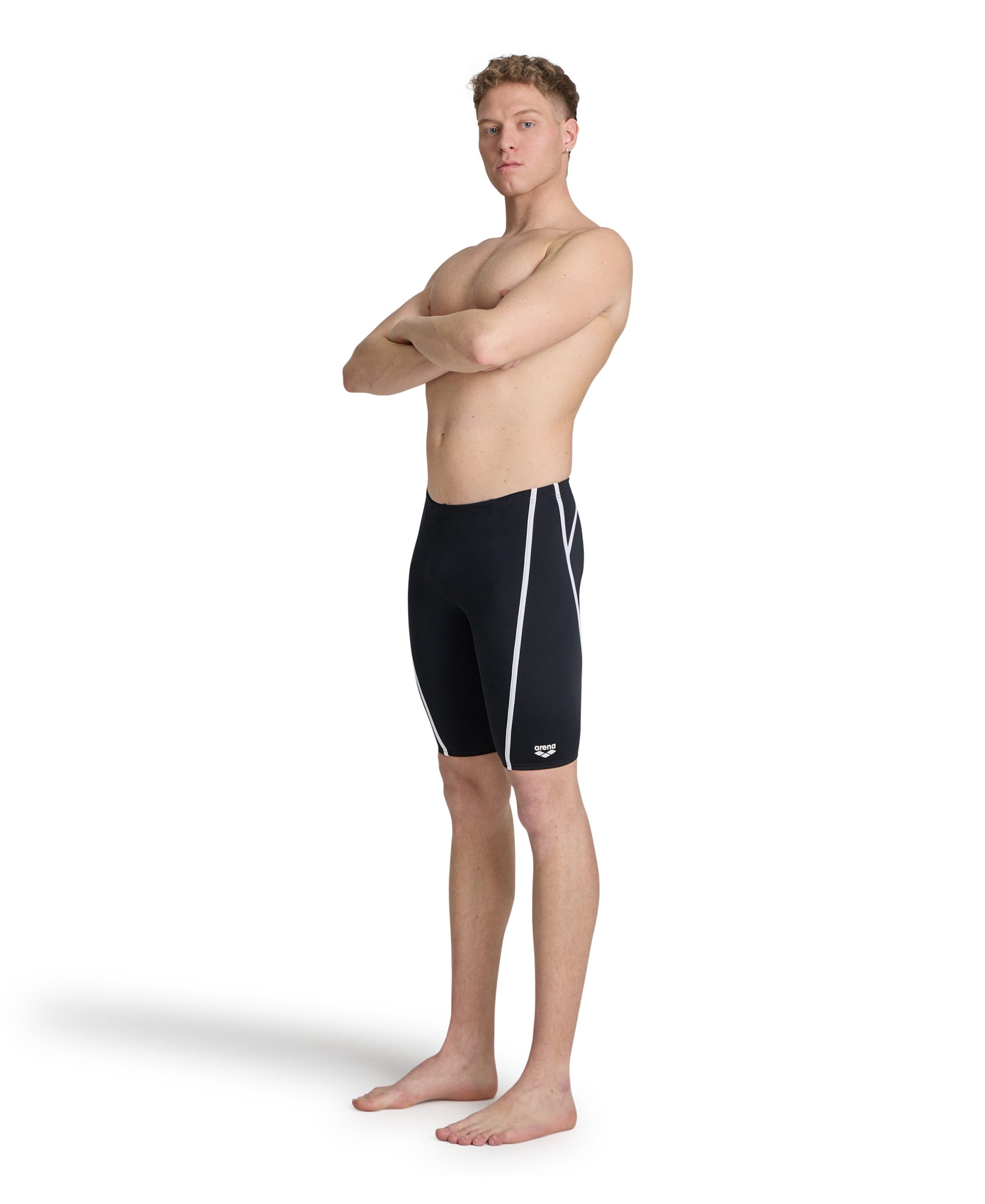 شورت سباحة رجالي Arena Pro_File Jammer مصمم للتدريب المكثف في المسابح. مصنوع من خامة MaxLife Eco المقاومة للكلور، بقصة انسيابية توفر حرية حركة عالية وثبات في الشكل واللون حتى مع الاستخدام اليومي.