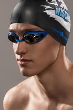 The goggles feature mirrored polycarbonate lenses, providing additional glare protection and making them ideal for bright environments and outdoor swimming.