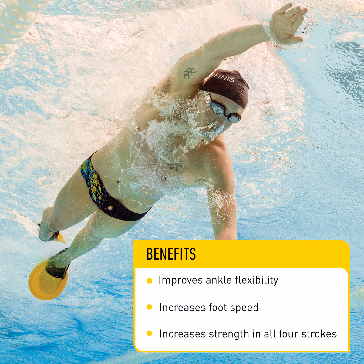 • UNIQUE BLADE DESIGN:Ellipsoidal blade generates correct propulsion in all four swim strokes – even breaststroke